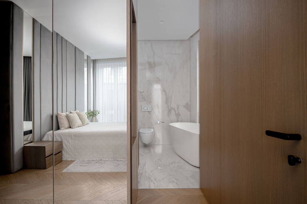 Sienos: dažytos, ąžuolo faneruotė, dirbtinis akmuo Neolith Himalayja Crystal Ultrasoft;