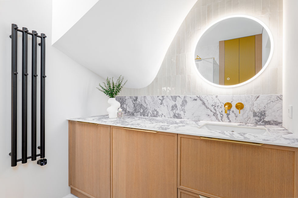 Grindys: dvisluoksnės Chevron ąžuolo parketlentės, akmens masės plytelės;